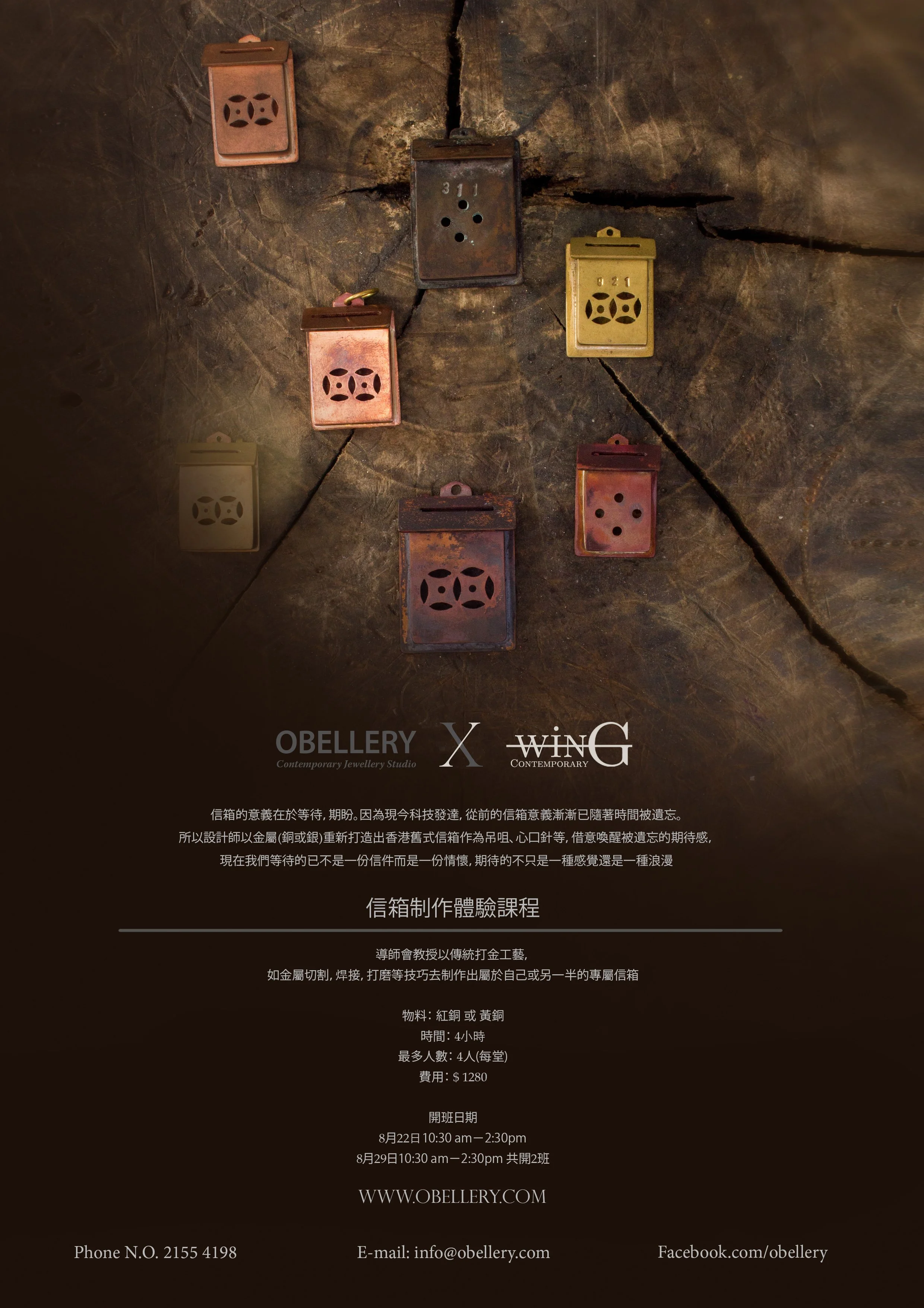 這次Obellery為大家帶來耳目一新的課程,由香港設計師Wing Chan教授製作懷舊信箱,可作為吊咀或胸針等。課程只開設兩班,可於Facebook, 電話或電郵形式報名