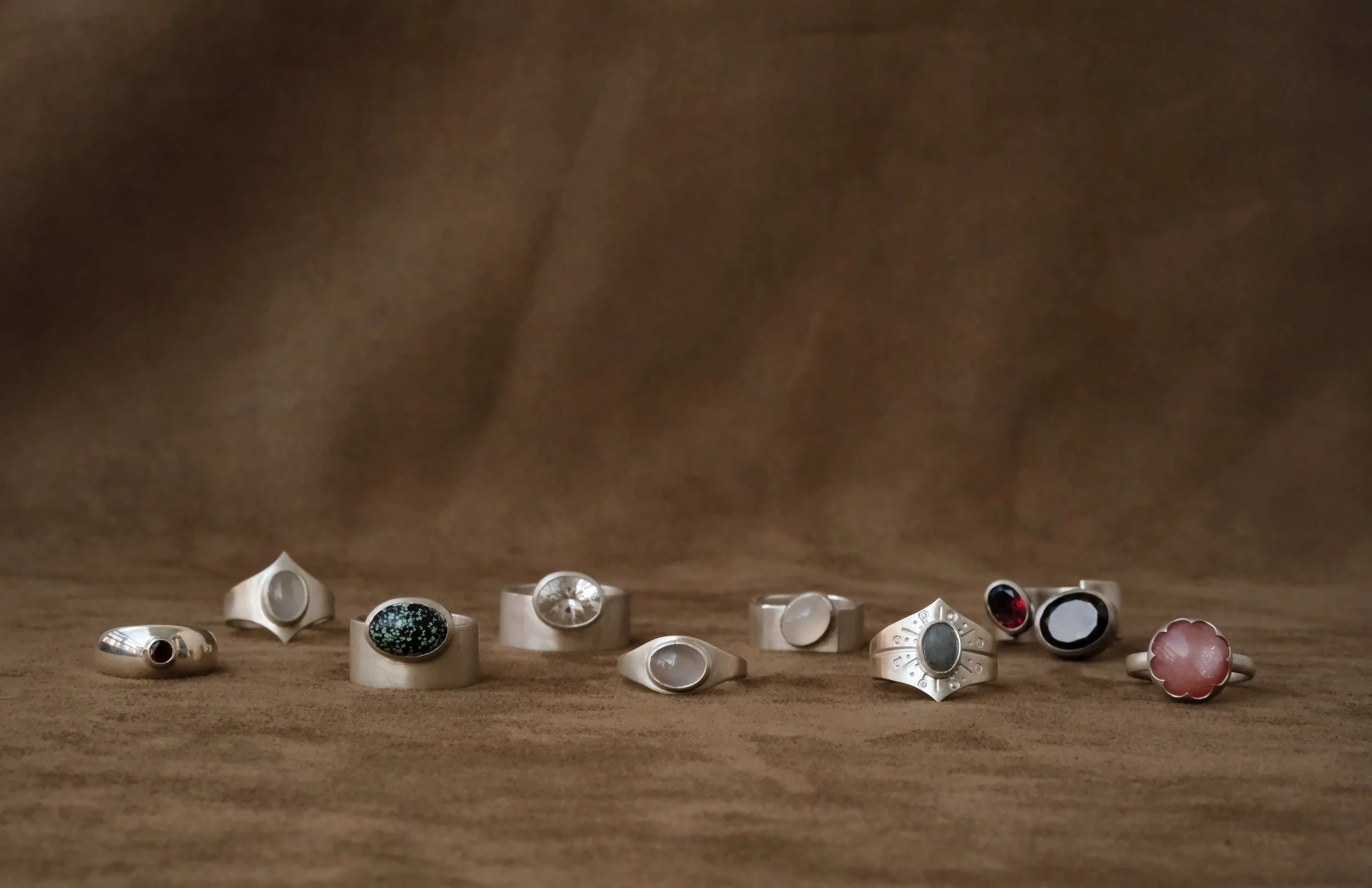 In this workshop, you’ll create a ring with the gemstone you like. A variety of thoughtfully designed ring styles are available for you to choose from — ranging from minimalist to elegant and contemporary aesthetics. Each style can also be adjusted slightly according to your preferences, making your final piece uniquely personal.