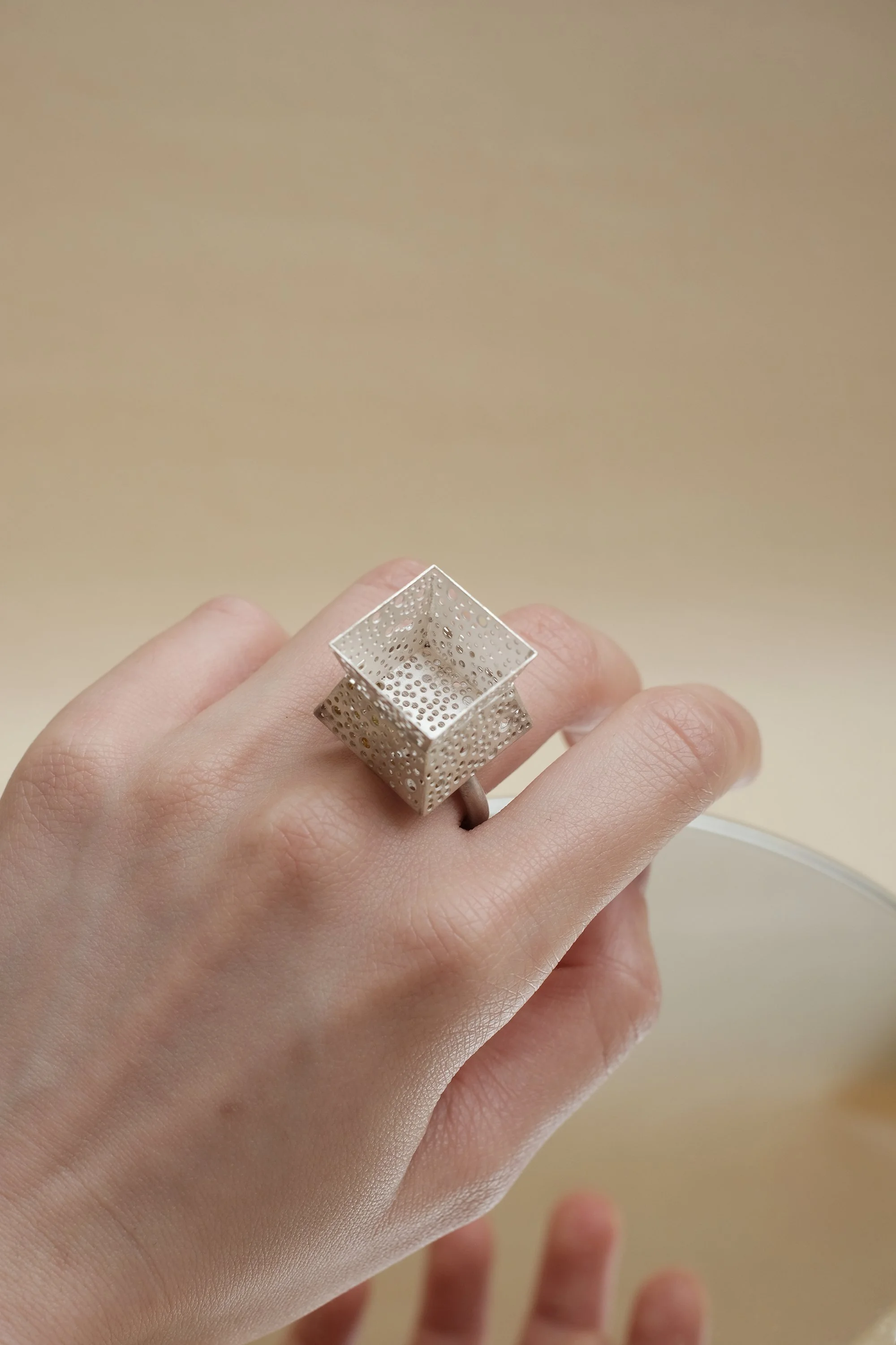 This piece ships immediately in US size 5 for Square Cube Ring and US size 6 for Irregular Cube Ring. If you want to talk to us before purchase, feel free to contact us via info@obellery.com